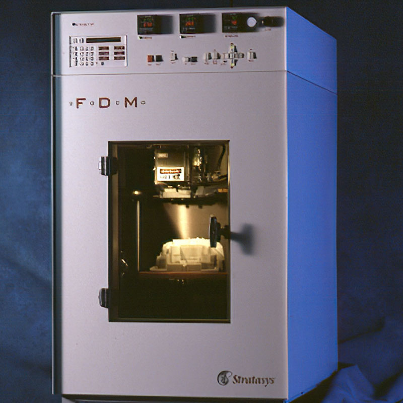 First commercial 3D printing based on filament is commecialised by Stratasys Inc. It was called rapid prototyping.